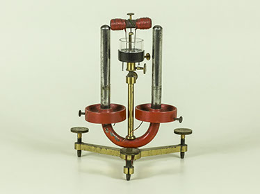 Un elegante piedistallo in noce tornito sorregge un braccio orizzontale nel quale è infisso un cilindro di ferro dolce, mantenuto in posizione da una vite in avorio. L’apparato serve per effettuare esperienze sull’induzione elettromagnetica.