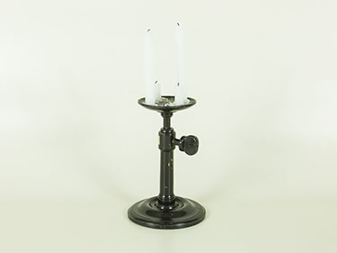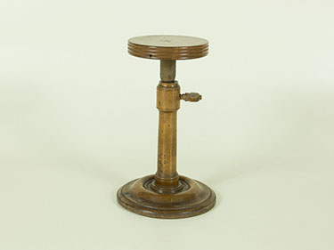 Al centro, posteriormente, sono imperniati due bracci in ottone, alle cui estremità possono essere applicati diversi accessori, quali uno specchio, una sorgente luminosa o una lastra di vetro traslucido.
