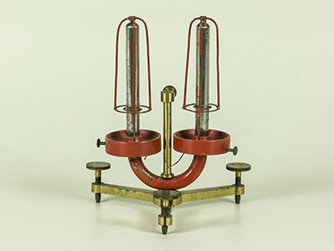 Un elegante piedistallo in noce tornito sorregge un braccio orizzontale nel quale è infisso un cilindro di ferro dolce, mantenuto in posizione da una vite in avorio. L’apparato serve per effettuare esperienze sull’induzione elettromagnetica.